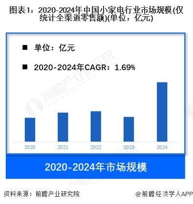 图表1:2020-2024年中国小家电行业市场规模(仅统计全渠道零售额)(单位:亿元)