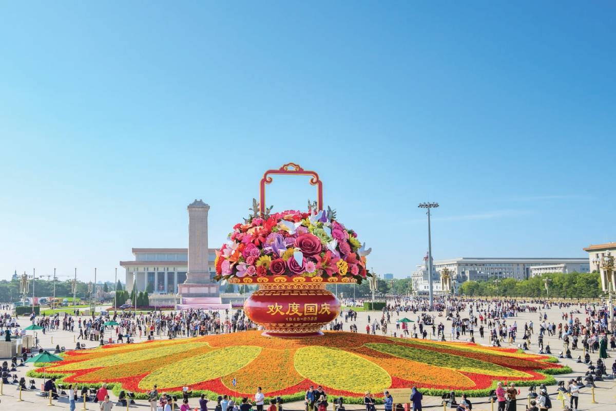 多年来,广场正中的“祝福祖国”巨型花篮,已成了国庆期间标志性的景观。它是北京城建园林集团精心打造的园林艺术杰作,承载着全国人民对祖国的深情祝福。
